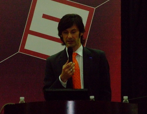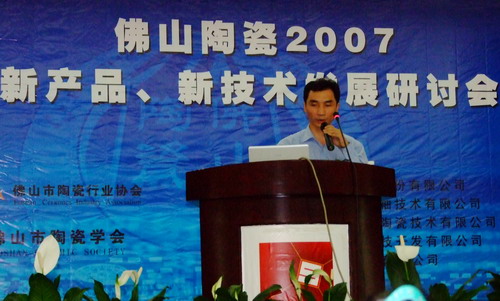 今天下午,在佛山國際會議展覽中心舉行佛山陶瓷2007新春新產品、新技術發(fā)展研討會,為提高佛山陶瓷競爭力展開了激烈的研究和討論,先后有5位行業(yè)專家上臺演講,下圖的來自科信達公司的萬斌先生的發(fā)言。
