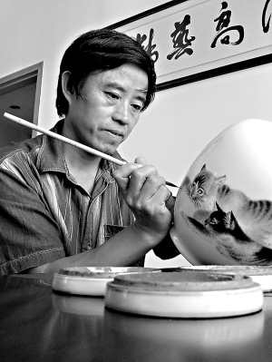而繪畫所用的瓷片也是從景德鎮(zhèn)專門訂做。通常的陶瓷畫,胎厚約在5毫米左右,而特制的瓷盤,厚度只有1毫米多一點,格外輕盈,視覺效果也更佳。