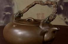 王敬之:這確實(shí)是一把好壺,首先我們看這把壺呢,它的砂非常好,這個(gè)砂呀簡(jiǎn)直像絲綢一樣,我們的手啊在摸它的時(shí)候非常非常舒服,這個(gè)砂淘的比較細(xì)。再一個(gè)呢,就是說這把壺的包漿非常好,包漿非常好。砂好,那么這把壺。再一個(gè)我們看它的造型,這是一把軟提梁壺。宜興紫砂壺當(dāng)中,軟提梁壺的歷史應(yīng)該說是在清朝末年。這個(gè)壺呢,我剛才看了一下,它這里邊,它鉆的孔。早期明朝到清朝初年的時(shí)候呢,它是單孔,一只孔。單孔可能是在到茶的時(shí)候,有時(shí)候它會(huì)出現(xiàn)茶葉會(huì)倒到嘴里邊,被塞牢了。所以,后來改進(jìn)了,到清朝晚期開始改進(jìn)出現(xiàn)一個(gè)網(wǎng)格,這把壺是網(wǎng)格。應(yīng)該說它的年代,是清朝晚期的東西。