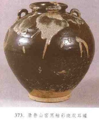 唐至元代瓷窯。窯址在河南魯山段店。唐代南卓《羯鼓錄》有“不是青州石墨,即是魯山花瓷”的記載,說明唐代魯山燒造的花瓷很有名。從采集的標(biāo)本來看,“花瓷”是黑釉或褐釉上帶白、月白等淺色斑紋裝飾的器物,器形有拍鼓、瓶、壺、罐、碗、盤等。宋、金時窯場擴大,燒瓷品種豐富,裝飾方法多種多樣。白釉器物有爐、罐、碗、缽等。白釉上繪褐彩的點、圈點、花卉等幾類紋飾。其中點紋排列方式有橫向形、花朵形和三角形等。另有白釉劃花、紋飾有荷葉、花草紋,器物為碗、枕,有以多組直線、曲線相間豎向排列組成的紋飾,有珍珠地劃花、還有粗線紋的缽,用黑釉、醬釉裝飾口沿的白釉碗。黑釉器物有線紋裝飾,有滿線與兩線一組兩種。有六角紋盤,盤中心素胎上有點彩花朵裝飾。還有醬彩裝飾的碗。醬釉有碗、罐等器物,青釉印花的幾種紋飾與臨汝等窯相近。此外,紅綠彩碗、三彩凸雕蓮瓣爐、綠釉獅形枕、劃花枕、褐黃釉劃花枕都具有魯山窯特色。(見圖373)