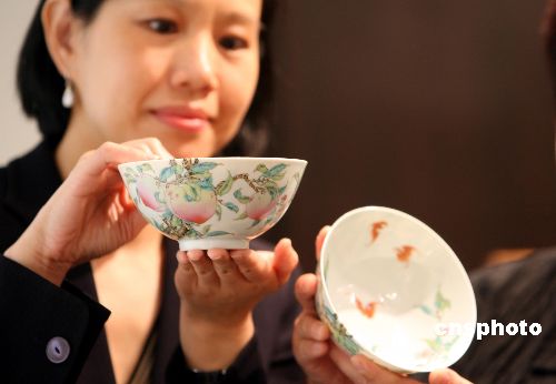香港佳士得將在5月29日舉辦拍賣會(huì),推出逾300件中國宮庭御制瓷器及藝術(shù)品珍品。9日,佳士得拍賣行向新聞界預(yù)展部分精品。中新社發(fā) 洪少葵 攝