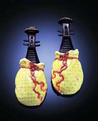 壁瓶在清代各朝均大量生產(chǎn),形式更多,其中乾隆時期的壁瓶更是達(dá)到了登峰造極的地步。乾隆時期的壁瓶,從紋飾來看,無論是釉上還是釉下的彩繪,或者是堆塑、鏤空、雕刻、貼花等工藝,都是非常講究裝飾工藝的,花色品種無不具備。其中一些釉色如真品一樣,配上形象逼真的造型,神形兼?zhèn),如蟹青釉仿出蟹形壁瓶、以翠綠釉仿出白菜壁瓶、以鱔魚黃釉仿出鰱魚形壁瓶等,皆鬼斧神工,形象生動。此次蘇富比拍賣行推出的“束帶琵琶包袱”壁瓶,就是通過釉色來模仿琵琶以及外面的包袱,可以說是栩栩如生,這也是受到市場追捧的重要原因。在乾隆時期還常以御題詩句配合壁瓶畫面,在2004年香港蘇富比的春拍上,清乾隆·御制剔紅雕趕珠龍紋嵌黃玉御題詩壁瓶,成交價達(dá)到了74.4萬港元,這也是目前此類壁瓶拍賣的最高價。