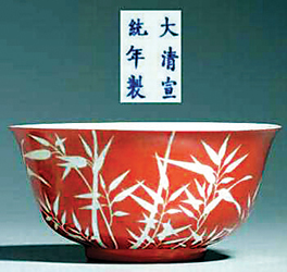 圖片說(shuō)明:清宣統(tǒng)·礬紅留白竹紋碗