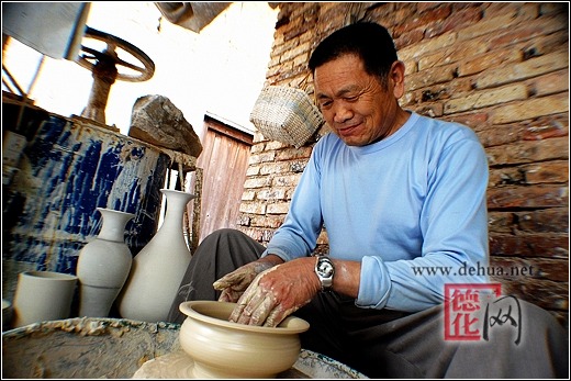 隨著時代的進步和市場的沖擊,許多傳統(tǒng)工藝便慢慢地被機械化所代替,在古瓷都德化,手拉坯只存在多數(shù)老人的記憶里,顏金錫是目前德化唯一一位天天在陶車上拉坯的人。當(dāng)他聽說政府要花大力氣保護傳統(tǒng)陶瓷燒制技藝時,這位年近耄耋的老瓷工笑了——