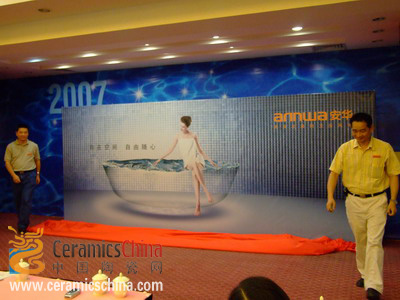 會(huì)議隨著安華衛(wèi)浴2007品牌新形象的揭幕進(jìn)入高潮,各媒體紛紛將攝影焦點(diǎn)集中在簡潔明麗的新形象畫面上,全場轟動(dòng)了,活動(dòng)也最大限度地調(diào)起人們的熱情。