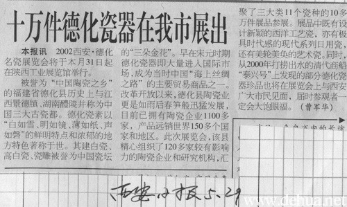 本報訊2002西安-德化名瓷展覽會將于本月31日起在陜西工業(yè)展覽館舉行。