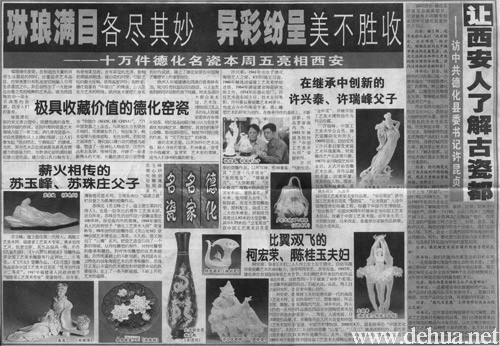 2002西安·德化名瓷展覽會揭幕前夕,記者就有關(guān)問題專程采訪中共德化縣委許昆貞書記。