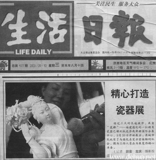 經(jīng)過三天的長途跋涉,來自“瓷都”——福建德化的一批精美瓷囂已順利抵達濟南舜耕國際會展中心,9月10日開始展出。泉城市民也有了與德化名瓷親密接觸的機會,圖為工作人員在為展覽作精心準備。(記者 田茹 左慶 攝影報道)