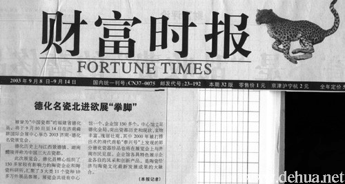 被譽(yù)為“中國瓷都”的福建省德化縣,將于9月10日至14日在濟(jì)南舜耕國際會展中心舉辦2003濟(jì)南·德化名瓷展覽會。