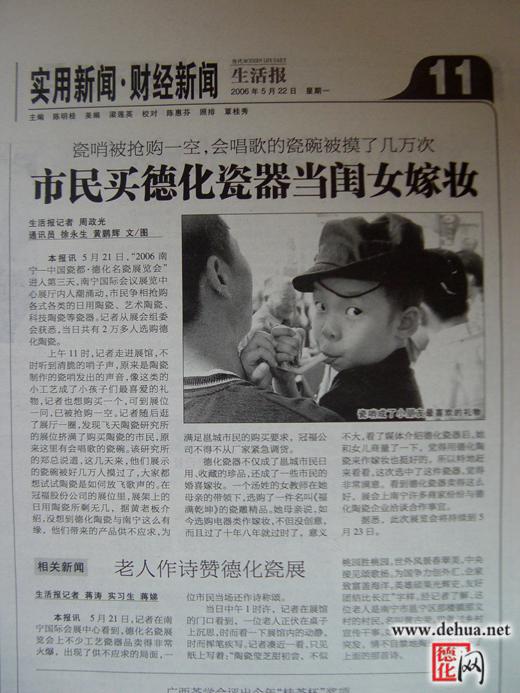本報(bào)訊 5月21日,記者在南寧國際會(huì)展中心看到,德化名瓷展覽會(huì)上不少工藝瓷器品賣得非常火爆。出現(xiàn)了供不應(yīng)求的局面,一位市民當(dāng)場還作詩稱頌。