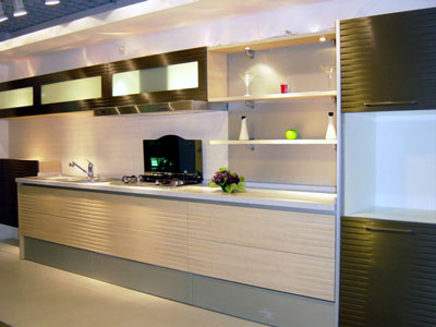 因此,對廚房家具色彩的要求是能夠表現(xiàn)出干凈,使人愉悅的特征。廚房家具的顏色通常中性色較少,而明度較高的色彩如白、乳白、淡黃等所占比例較大,能夠刺激食欲的色彩,如橙紅、橙黃、棕褐等跳躍顏色起搭配作用。