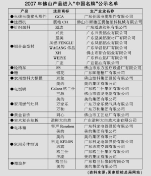 目前佛山建陶業(yè)獲中國名牌產(chǎn)品稱號名單