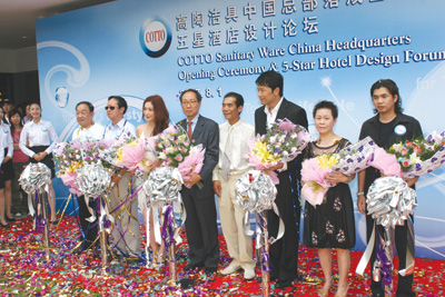 本報訊 (記者 劉小明) 8月1日上午11點,高陶潔具COTTO中國總部新展廳在一片歡樂祥和的氣氛中盛大開幕,香港著名影星苗僑偉、溫碧霞應邀出席剪彩儀式。中國建筑學會室內(nèi)設計分會(CIID)副理事長勞智權、CIID深圳專業(yè)委員會劉力平秘書長、CIID東莞專業(yè)委員會會長兼新展廳設計師麥德斌先生、高陶潔具中國總代理高陶建材董事長彭洪萼、高陶潔具中國總代理副總經(jīng)理周振宇以及泰國高陶公司銷售總監(jiān)與兩位明星一起剪彩。