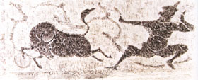 漢代畫像磚石的繪畫技法較為粗拙凝重,注重形體的大致勾勒,而不作局部的細(xì)致處理,風(fēng)格質(zhì)樸粗放,自然平實,構(gòu)圖獨立、簡率,卻黑白對比分明,富有裝飾趣味。這些堅硬磚石而留下的藝術(shù)珍品,至今仍以其獨特的特色而煥發(fā)著不滅的光輝,顯示不朽的藝術(shù)魅力。