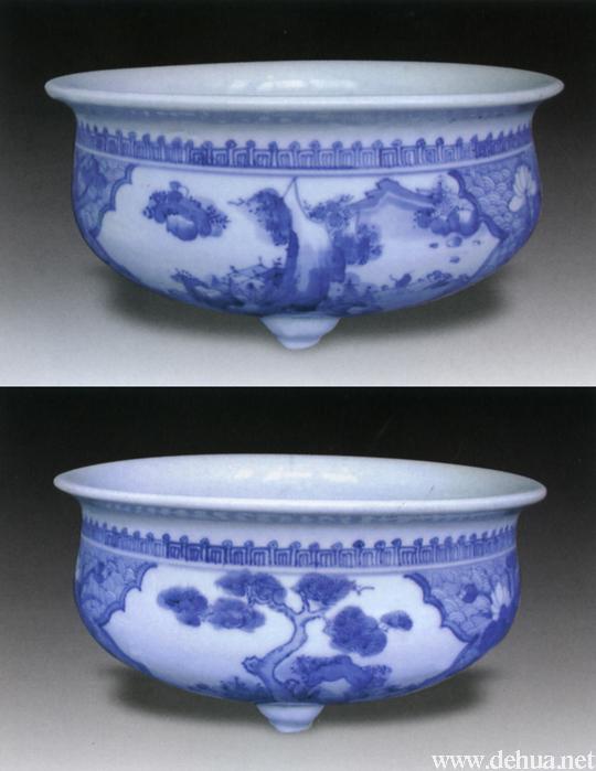 ▲清·雍正 青花錦地開光山水人物紋爐(陳朝東藏)