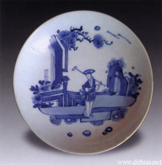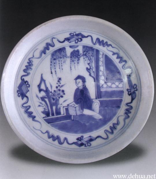▲清早期 青花高仕紋茶盤(德化縣陶瓷博物館藏) 口徑25.5厘米