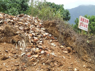 究竟有多少文物被盜挖?湯館長介紹,前后四五天時(shí)間,陸續(xù)有村民白天帶著鋤頭到這里來掏挖。他保守估計(jì),大概有上百件相對完整的瓷器被盜走。在現(xiàn)場,文物部門發(fā)現(xiàn)了塑料袋、箱子等裝運(yùn)瓷器的包裝物。據(jù)村民說,除了跟風(fēng)之外,不少古玩愛好者雇傭村民以每件50元的價(jià)格交換,刺激了村民前去盜挖、哄搶。