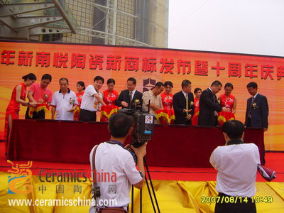 (本網(wǎng)新聞主編 蘇振明 攝影報道)8月14日上午,在一片鑼鼓聲聲、彩旗飄飄、醒獅輕舞的熱鬧氣氛中,新南悅陶瓷制品有限公司隆重舉行了新南悅陶瓷營銷中心展廳開業(yè)大典。新中源集團公司總裁霍鐮泉先生、新南悅銷售公司總經(jīng)理霍本潮先生、佛山當?shù)卣c文化部門以及新南悅的各地經(jīng)銷商朋友、業(yè)界人士和眾多媒體共同見證了這一神圣而喜慶的時刻。