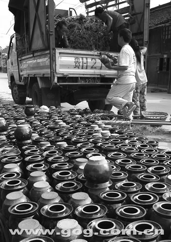 圖:制陶戶為劍河香豬食品廠生產(chǎn)的包裝罐裝車啟運(yùn)。