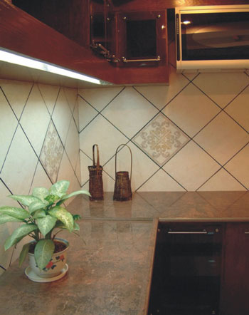 墻面鋪裝:采用45度斜鋪與垂直鋪裝結合這使墻面由原來較為單調的幾何線條變得豐富和有變化,增強了空間的立體感和活躍氣氛。