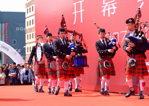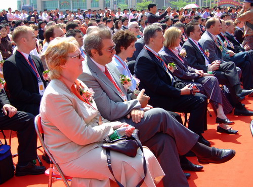 4月18日上午,和風(fēng)麗日。30多名來自德國、意大利等國家的歐洲客商走出華夏新中源大酒店,結(jié)伴朝佛山國際會展中心走去。此時,佛山國際會展中心已是彩球飄揚,雄獅勁舞。第九屆佛山(國際)陶瓷博覽交易會開幕式會場商客云集,德國拓歐集團、佛亞展覽(香港)有限公司總裁托馬斯、中國陶瓷工業(yè)協(xié)會理事長楊自鵬、佛山市副市長李子甫、中國建筑衛(wèi)生陶瓷協(xié)會會長丁衛(wèi)東、禪城區(qū)副區(qū)長梁炳軍、佛山市陶瓷行業(yè)協(xié)會秘書長尹虹等有關(guān)領(lǐng)導(dǎo)及葉德林、何新明、黃建平、張孟友等一批中國建陶巨頭掌門人于主席臺就坐。隨著蘇格蘭風(fēng)情樂隊的樂器演奏,第九屆佛山(國際)陶瓷博覽交易會在眾人的期盼中拉開了序幕。