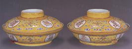 清光緒 景德鎮(zhèn)黃地“萬壽無疆”碗(一對)