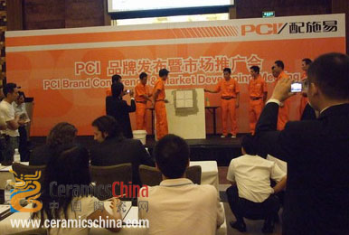 2007年8月30日,德國巴斯夫集團(tuán)在廣州天河區(qū)天譽(yù)威斯汀酒店舉行了“PCI品牌發(fā)布暨市場推介會”。 出席當(dāng)天會議的有巴斯夫集團(tuán)配施易品牌總經(jīng)理托馬斯·沃爾夫、項(xiàng)目經(jīng)理馬庫斯、巴斯夫佛山分公司銷售及市場經(jīng)理郭建嶺以及深圳、東莞、廣州、中山和佛山等地有關(guān)行業(yè)的客戶朋友;來自陶瓷行業(yè)媒體的《陶城報》、《中國建筑衛(wèi)生陶瓷》和本網(wǎng)記者分別作為報紙、雜志和網(wǎng)絡(luò)代表,也應(yīng)邀參加。
