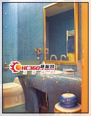 a玻璃馬賽克色彩豐富,配色方便,在燈光下更能變化出深淺不一的夢幻效果,因此適合用于光線較暗或沒有自然光的衛(wèi)浴間。