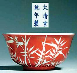 清宣統(tǒng)·礬紅留白竹紋碗