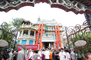 這棟老舊的房子經(jīng)過他的巧思妙想和精心裝修后,貼滿了4億多古瓷片、13000多件古瓷器、300多件漢白玉石雕、300多只隨處可見的瓷貓枕和20多噸天然水晶、瑪瑙。就連屋子里都用瓷片拼貼出了中外名畫的圖案,齊白石、徐悲鴻、梵·高、達·芬奇等藝術大師的畫作在瓷片的還原下,呈現(xiàn)出獨特的韻味。“瓷房子”內(nèi)還巧妙放置了古代木樓、古家具等古物,處處洋溢著濃濃的東方情調,成為張連志向世人展示中華文化的一張名片和本市一道獨特的旅游文化景觀。特別是盤旋在瓷房子上的巨龍造型,和那些看似隨意但獨具匠心的中國符號,巧妙地融合了西方建筑與中國古瓷的美,堪稱一絕。張連志在接受記者采訪時表示,瓷房子是他表達對中華文明敬意和對家鄉(xiāng)深情的一件作品,蘊涵著一顆中國心。作為中國人,他要通過“瓷房子”向世界展示古老的瓷文化;作為天津人,他要向世界展示天津的形象。