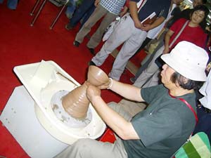 晚報(bào)訊 (記者侯林 高金霞 譚壯飛)真人雕塑、瓷笛、刻瓷表演、陶瓷飲水機(jī)……陶博會(huì)一開幕就頻現(xiàn)亮點(diǎn),讓海內(nèi)外與會(huì)者大飽眼福。昨天上午8點(diǎn)半,記者來到了淄博國(guó)際會(huì)展中心,許多市民早早地排起了長(zhǎng)隊(duì),為的是領(lǐng)取參觀證先睹為快。參會(huì)者豎起了大姆指:今年的陶博會(huì)真好看!