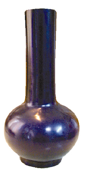葉潔瑜老師根據(jù)照片對另一位讀者提供的藍釉花瓶進行鑒定,斷定該花瓶為清光緒年間的藍料長頸瓶。該藍料長頸瓶的整個花瓶都由玻璃做成,質(zhì)感非常強,整個花瓶釉彩鮮艷漂亮,線條流暢,造型簡潔凝練,也屬于精品。