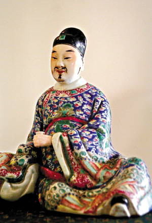 據(jù)冼先生介紹,這尊名“唐太宗”的清乾隆五彩瓷器精品,全部由硬彩制作,從其衣服紋飾來看,胸口、背后以及肩膀的衣服上,均有盤龍纏繞,可以肯定是皇帝身份。而從這尊瓷像的制作及完美程度來判斷,可能是件孤品。