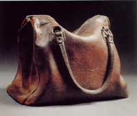 萊文三次榮獲美國(guó)國(guó)家基金會(huì)的嘉獎(jiǎng),無(wú)數(shù)的個(gè)展和聯(lián)展,大量的出版物的介紹使其成為美國(guó)及至世界陶藝界超級(jí)寫(xiě)實(shí)主義的代表。 萊文曾嘗試用陶瓷模仿布料衣物的效果,但不理想。后轉(zhuǎn)而創(chuàng)作以"舊皮貨"為主題的作品。她的作品成型方法是泥板成型,在其中填入各種軟硬適度的化纖織品,使泥土的柔軟性更接近皮革又不至于凹陷。皮革上的拉鏈、金屬扣環(huán)等則采用注漿、壓模等方式形成亂真的效果。再其后的作品就直接使用了真實(shí)的金屬附件,其"混淆視覺(jué)"的效果更讓人驚嘆。