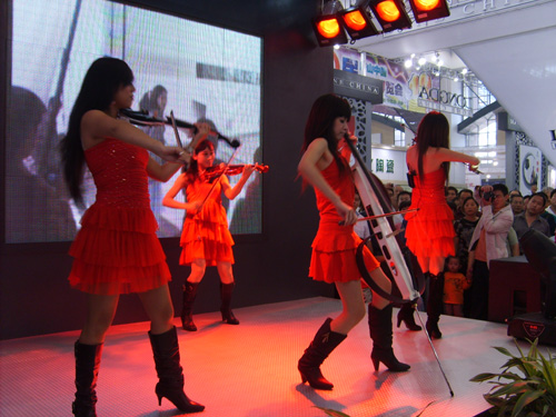 惠達(dá)展區(qū)的四個(gè)電音美女成為展館的一道亮麗的風(fēng)景線