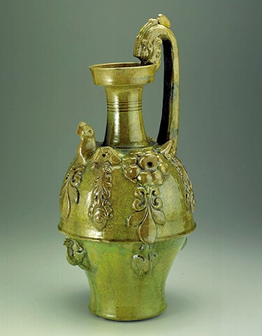 帶釉螭柄雞首陶壺