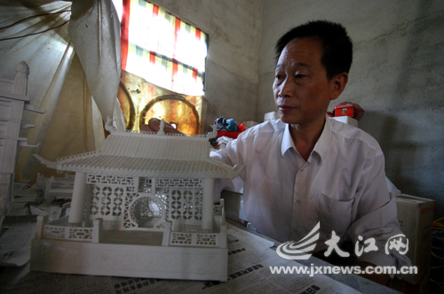 羅冬根是鉗工出身,直到1990年才進入陶瓷行業(yè)。他是一位紅學(xué)迷,最大的興趣是制作建筑模型。他說:“我想趁著現(xiàn)在還做得動,做一件前無古人的作品,好給后輩留下一點什么,同時,也想以此證明景德鎮(zhèn)的瓷雕水平。2001年我再讀《紅樓夢》時突發(fā)奇想,決定雕刻書里的‘大觀園’建筑群。”