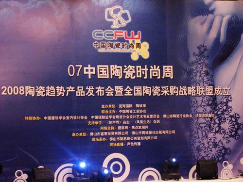 2007年10月16日,2008陶瓷趨勢產(chǎn)品發(fā)布會暨瓷海國際全國陶瓷采購戰(zhàn)略聯(lián)盟成立儀式在廣東佛山舉行,在儀式上,廣東省經(jīng)貿(mào)委中小企業(yè)開拓國際市場平臺、廣州靈頓信息科技有限公司國際部經(jīng)理梁敏華向瓷海國際•中國陶瓷交易中心授牌,瓷海國際•中國陶瓷交易中心營銷總監(jiān)林瑩代表瓷海國際出席授牌儀式,這也標(biāo)志著瓷海國際全國陶瓷采購戰(zhàn)略聯(lián)盟正式成立。儀式結(jié)束后,搜狐網(wǎng)、焦點家居網(wǎng)就此次授牌儀式的意義以及陶瓷企業(yè)開拓國際市場等問題采訪了梁敏華經(jīng)理。