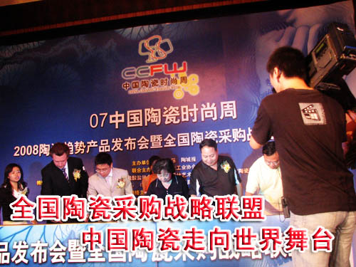 2007年10月16 日,佛山陶瓷界乃至中國(guó)陶瓷界目光都聚集在了廣東佛山財(cái)神大酒店,今天,在這里傳出了中國(guó)陶瓷界最有力的聲音,“2007中國(guó)陶瓷時(shí)尚周”暨瓷海國(guó)際全國(guó)陶瓷采購(gòu)戰(zhàn)略聯(lián)盟成立活動(dòng)隆重召開。該活動(dòng)的舉行標(biāo)志著“中國(guó)陶瓷行業(yè)采購(gòu)高端社交圈”的形成。