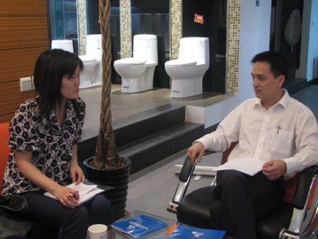 焦點記者在佛山采訪恒潔市場部經(jīng)理劉建豪