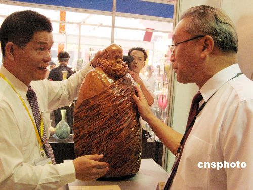 備受關(guān)注的第二屆中國(guó)(莆田)海峽工藝品博覽會(huì)二十七日在媽祖的故鄉(xiāng)——福建莆田揭幕,來自緬甸、越南、臺(tái)灣、香港等國(guó)家和地區(qū)三百多家企業(yè)的萬余件海峽兩岸工藝精品紛紛亮相,具有臺(tái)灣特色的佛像、木雕、牙雕、陶藝、玉雕尤其吸引了眾人的目光。