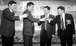 “黃梅的陶土資源豐富,儲(chǔ)藏有紫砂土約1億噸、紫砂泥約3千萬(wàn)噸;周邊地區(qū)的瓷磚銷(xiāo)售市場(chǎng)廣闊,僅武漢漢西建材大市場(chǎng)一年的銷(xiāo)售額就達(dá)20億元;煙煤價(jià)格僅需520元/噸。黃梅是湖北省確定的“十一五”陶瓷產(chǎn)業(yè)基地,已規(guī)劃好占地6800畝的建陶工業(yè)園。佛山企業(yè)入園投資后,企業(yè)增值稅額三年內(nèi)地方留成部分的50%獎(jiǎng)給企業(yè);涉企規(guī)費(fèi)五年內(nèi)全免;企業(yè)的勞動(dòng)用工,納入縣政府陽(yáng)光工程,政府提供免費(fèi)招工、培訓(xùn)服務(wù)。” 臺(tái)上,黃梅縣委書(shū)記吳海濤高聲推銷(xiāo)當(dāng)?shù)貎?yōu)良的投資環(huán)境;臺(tái)下,歐文萊陶瓷、蒙娜麗莎陶瓷、簡(jiǎn)一陶瓷等100多家佛山企業(yè)的代表認(rèn)真傾聽(tīng),不時(shí)相互交流意見(jiàn)。