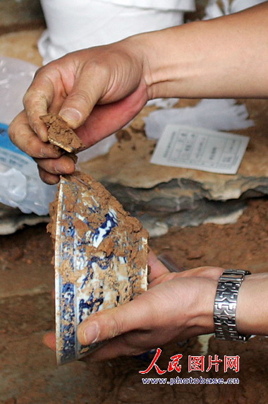 一出土的龍紋青花碗缺了一個(gè)口子。 版權(quán)作品,請(qǐng)勿轉(zhuǎn)載。