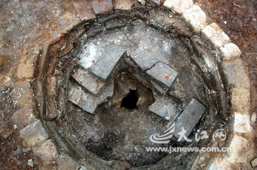 昌江河畔一處挖掘現(xiàn)場,發(fā)現(xiàn)直徑逾100厘米的圓形轆轤車坑,坑以青磚、石塊砌成,中心有一個安置轆轤車足的圓形小洞,是景德鎮(zhèn)地區(qū)目前保存最為完好的明代晚期陶車坑。