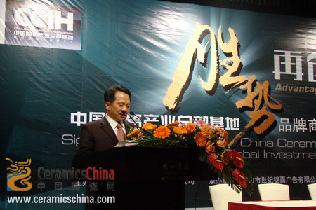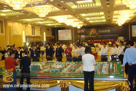 本網(wǎng)記者 蘇振明 攝影報(bào)道 11月16日下午,“中國(guó)陶瓷產(chǎn)業(yè)總部基地”品牌商戶簽約暨全球招商啟動(dòng)儀式,在佛山賓館隆重舉行。中國(guó)建筑衛(wèi)生陶瓷協(xié)會(huì)會(huì)長(zhǎng)丁衛(wèi)東、中國(guó)建筑衛(wèi)生陶瓷協(xié)會(huì)副秘書(shū)長(zhǎng)夏高生、禪城區(qū)區(qū)委副書(shū)記、區(qū)長(zhǎng)梁維東、佛山市經(jīng)貿(mào)局局長(zhǎng)李堅(jiān)、佛山市人民政府辦公室副主任馬時(shí)光、禪城區(qū)常委、常務(wù)副區(qū)長(zhǎng)劉宏葆、禪城區(qū)人民政府副秘書(shū)長(zhǎng)吳志偉、南莊鎮(zhèn)鎮(zhèn)長(zhǎng)高成建等領(lǐng)導(dǎo),中國(guó)陶瓷產(chǎn)業(yè)總部基地的營(yíng)運(yùn)商佛山陶瓷城發(fā)展有限公司董事長(zhǎng)何新明,以及各知名陶瓷企業(yè)的代表和各大新聞媒體領(lǐng)導(dǎo)、記者等500多人出席了儀式。