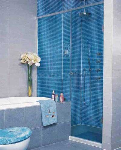 挑選合適的基底??不同色系的藍(lán)色瓷磚:馬賽克與瓷磚的搭配是這個衛(wèi)生間的設(shè)計重點,藍(lán)色系的靈活運用在這里是最關(guān)鍵的一步。“整體浴房”的透明玻璃墻體與藍(lán)色馬賽克的組合,使空間顯得開闊,質(zhì)感搭配更和諧。