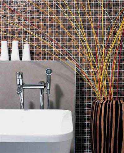 棕色給人一種沉穩(wěn)、高貴之感,大面積的棕色馬賽克和造型硬朗的浴具搭配,營造出平穩(wěn)卻不乏生動的空間。以下面的例子為榜樣,現(xiàn)在就拆解棕調(diào)衛(wèi)浴的打造招數(shù)!