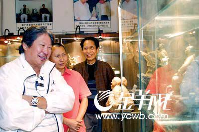 本報訊記者丁華、胡練宇攝影報道:上周五下午,知名香港武打影星洪金寶一行五人來到佛山石灣美術(shù)陶瓷廠參觀,并拜訪了黃松堅、黃志偉兩位陶藝大師。“果然名不虛傳!”在佛山美術(shù)陶瓷廠,面對風(fēng)格各顯的眾多大師作品,洪金寶一再駐足欣賞,感嘆連連。在國家級陶藝大師黃松堅的工作室里,一件主題為《一代宗師》的黃飛鴻的陶塑像令洪金寶眼前一亮。黃松堅介紹,《黃飛鴻》是一個系列,一套共有《王者之風(fēng)》、《男兒當(dāng)自強(qiáng)》、《無影腳》《一代宗師》四樽塑像,是其子黃志偉的得意之作。這些塑像都放置在黃志偉的工作室,那里離美陶廠有好幾公里。不顧隨行人員“還得趕回去”的提醒,洪金寶一行還是驅(qū)車20多分鐘到黃志偉的工作室。