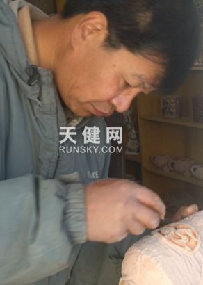 李永春是個較真的人,為了在泥土中找出能燒出紅色的陶土,李永春一直在苦苦地鉆研。“陶瓷燒制中最難的就是紅色的燒制技法,研究了兩年,煤和電我都不知花了多少錢。”在陶藝的世界里,李永春的身心既在盡情地馳騁,又在艱難地跋涉,正是在這樣的過程中他不知疲憊地破解了一道道難題,攻下一個個難關(guān)。隨手拿起一件工具,李詠春介紹說,“我用的這種工具是中國最古老的——吹瓶,大連用這種辦法的現(xiàn)在大概只有我一個。”李永春告訴記者,用這種古老的方法來上釉,作品更具個性,因為這釉料是隨著自己的氣息噴射出去的。在這樣的創(chuàng)作過程中你可以強(qiáng)烈的感覺到,每一件陶藝作品都是有生命的,他與你在一同呼吸。