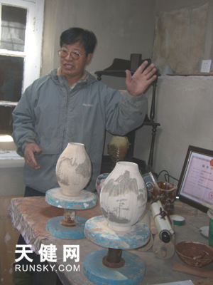 據(jù)說,在幼年時李永春就對繪畫有了興趣。十幾歲時,他隨父親去了陜西,幾年后在一家工藝美術(shù)社找到了工作。后來因為文革,李永春辭去工作,回到了家鄉(xiāng)旅順。雖然在這里他找到了一份在別人看來還不錯的工作,可他始終無法隱去心中的陶藝情結(jié),終于辭去工作搞起了“單干”。